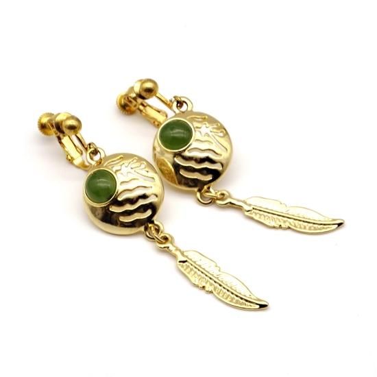 少しインディアンテイストなデザインでグリーンのカボションが目を引きます。