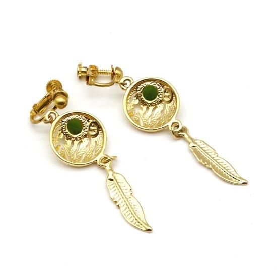 ゴールドカラーの羽根のモチーフがゆらゆらと揺れる作りがとても素敵です。